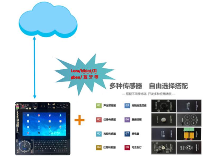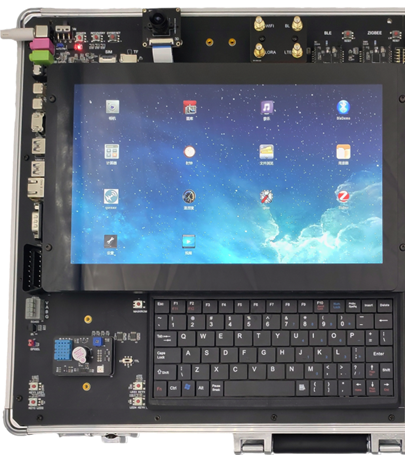 嵌入式邊緣物聯網實驗平臺是一款集成物聯網、人工智能、嵌入式、移動互聯技術于一體的高端教學科研實驗平臺。整個教學平臺包括物聯網、嵌入式Linux和人工智能(AI),三個部分互相支撐、互為補充。人工智能部分的硬件基于嵌入式ARM控制器、高清相機模塊、7麥麥克風陣列,具備語音、圖像數據的采集和處理能力及適用于多種場景的控制接口;嵌入式Linux部分的硬件采用CPU+GPU雙處理器架構,配備高清大屏以及豐富的外設接口;物聯網部分的硬件支持RFID、Zigbee、Ble、Lora、NBIoT等無線傳輸技術以及20余種傳感器模塊。