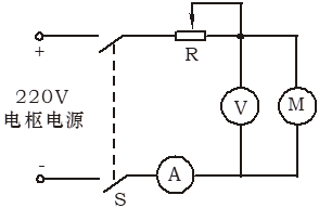 (3)M起動后,調節電樞電源的“電壓調節”旋鈕,使電動機電樞端電壓為220伏。減小起動電阻 R1阻值,直至短接。