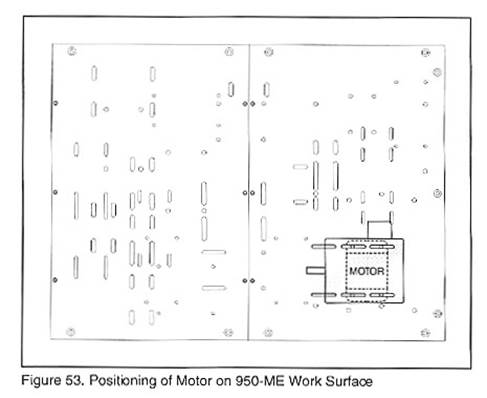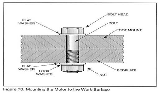 A.  用裝配螺釘,螺母和墊圈將電機安裝到工作表面,如圖55所示,用手工擰緊。