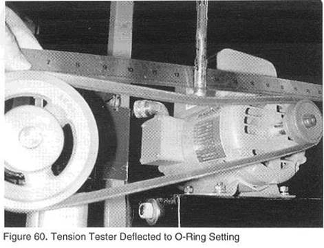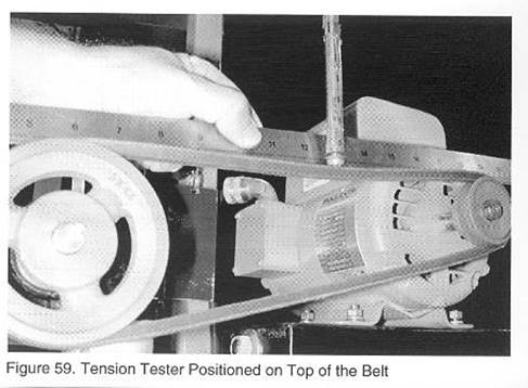 E. 再將張力測試儀放置在帶的跨距中心,并且使之與帶垂直,如圖59所示;