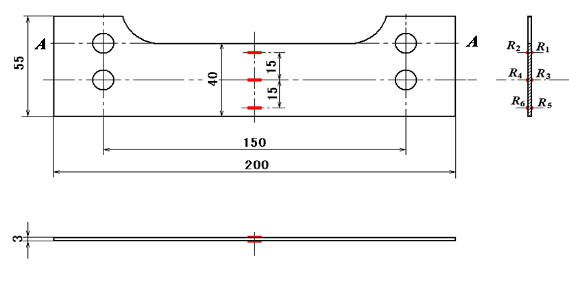 2.測定如圖5-2所示試件,沿A-A加載時,即偏心拉伸截面中性軸位置。