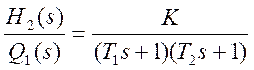 根據(jù)物料平衡方程,可得出雙容液位過程的傳遞函數(shù)為
