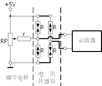 將電阻式傳感器與振動臺相連,在振動臺的帶動下,可以觀察電阻式傳感器動態特性,電路圖如圖5-1。