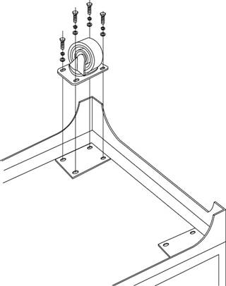 ① 桌體圍板由于避免運輸過程中的損壞,需要在用戶單位卸車后安裝。按照下圖所示的順序安裝圍板與萬向輪。