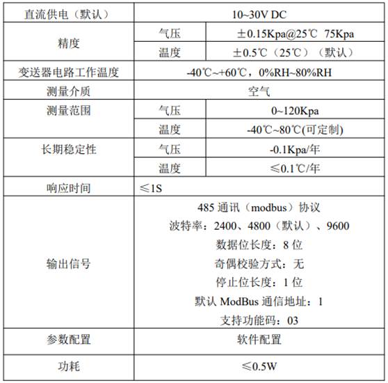 圖2-6 大氣壓力傳感器參數表