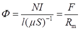 磁路中的磁通等于作用在該磁路上的磁通勢F除以磁路的磁阻,這就是磁路的歐姆定律,即