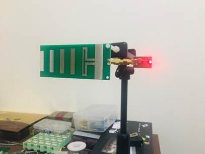 圖4垂直極化天線發射接收為綠色和紅色LED燈