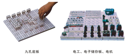 通用電工實驗臺具有較完善的安全保護措施,較齊全的功能。實驗桌中央配有通用電路板,電路板注塑而成,表面布有九孔成一組相互聯通的插孔,元件盒在其上任意拼插成實驗電路,元件盒盒體透明,直觀性好,盒蓋印有永不褪色元件符號,線條清晰美觀。盒體與盒蓋采用較科學的壓卡式結構,維修拆裝方便。元器件放置在實驗桌下邊左右柜內,大大提高了管理水平,規劃化程度,大大減輕了教師實驗準備工作。