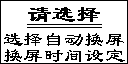 按+/選擇鍵,選擇自動換屏或換屏時間設定。如選選擇自動換屏按功能/確認鍵顯示如下: