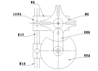 機構說明:槽輪機構動力性能較差,但若將一個導桿機構串聯在槽輪的機構之前,則可改善槽輪機構的動力性能。