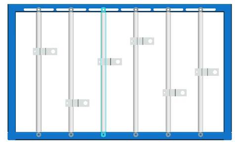 實驗臺機架如圖2所示:機架中有5根鉛垂的活塞桿,它們可沿X軸左右移動,固定靠六角頭螺釘和蝶型螺母固定。需移動時請先將蝶型螺母松開,雙手推動活塞桿.并盡可能使它保持垂直狀態。活塞桿上的滑塊可沿Z軸上下移動,用內六角螺釘將滑塊緊定在活塞桿上。(注意:在移動立柱或滑塊時需用直尺或卷尺量出它們的相對位置再把螺釘擰緊。)
