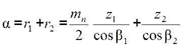 如圖4-2所示,過(guò)P點(diǎn)作交錯(cuò)軸斜齒輪副軸線(xiàn)的公垂線(xiàn), 它的長(zhǎng)度就是交錯(cuò)軸斜齒輪傳動(dòng)的中心距: