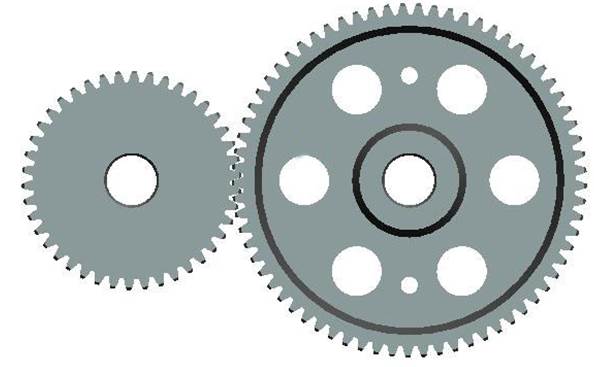 1、 計(jì)算齒輪傳動(dòng)比:其中主動(dòng)齒輪分度圓直徑為50MM,從動(dòng)齒輪分度圓直徑為84MM,如圖3-2所示: