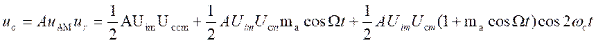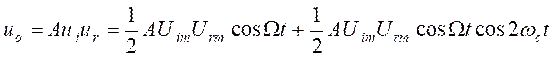顯然,上式右邊第一項(xiàng)是所需要的調(diào)制信號(hào),而第二項(xiàng)為高頻分量,可被低通濾波器濾除。
