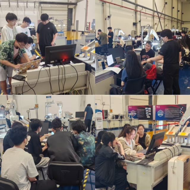 在課程開設(shè)期間,計算機科學(xué)與技術(shù)學(xué)院書記魏建華、常務(wù)副院長張傳林、副書記齊永曉、教學(xué)秘書徐曼、計算機系主任葉文珺等一行來到校企合作實訓(xùn)基地,實地走訪調(diào)研學(xué)生課程實訓(xùn)情況。在廠房現(xiàn)場,領(lǐng)導(dǎo)們觀摩了學(xué)生分組進(jìn)行的工業(yè)視覺零件輪廓識別,顏色識別與卡尺工具應(yīng)用等實操,并與授課老師、參訓(xùn)學(xué)生親切交流。張傳林對學(xué)生們將理論知識轉(zhuǎn)化為實踐應(yīng)用的能力表示肯定,他強調(diào)產(chǎn)教融合實訓(xùn)是培養(yǎng)應(yīng)用型人才的關(guān)鍵環(huán)節(jié),希望同學(xué)們珍惜企業(yè)實戰(zhàn)機會,在真場景中練就真本領(lǐng)。后續(xù)學(xué)院將持續(xù)跟蹤實訓(xùn)成效,動態(tài)調(diào)整教學(xué)方案,持續(xù)優(yōu)化產(chǎn)業(yè)需求為導(dǎo)向、能力提升為核心的育人新模式,確保人才培養(yǎng)與行業(yè)需求精準(zhǔn)對接。