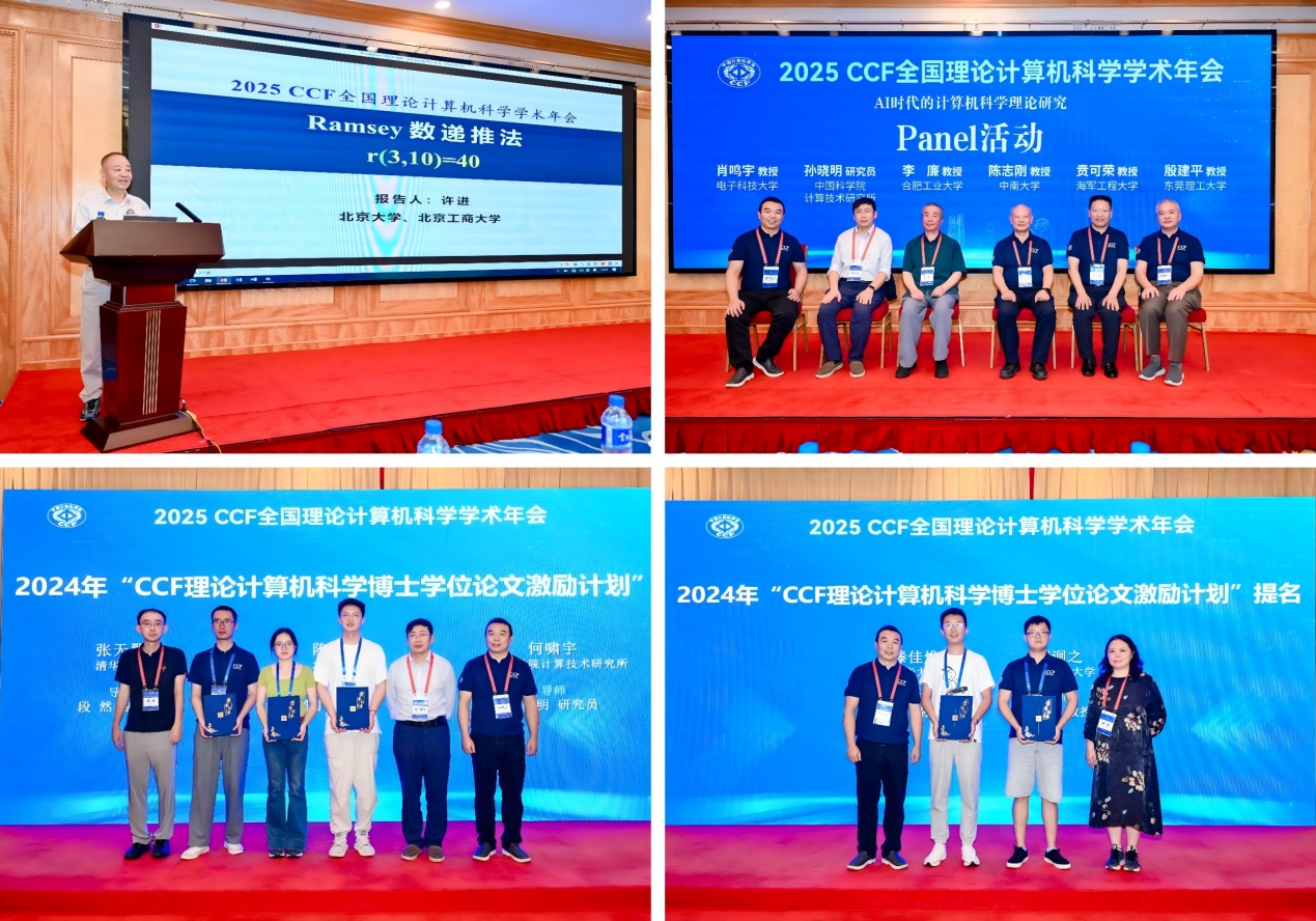 會議設置了多個特色板塊,推動學術(shù)與產(chǎn)業(yè)聯(lián)動。在專題報告環(huán)節(jié),北京大學許進教授作題為《R(3,10)=40》的報告。在博士學位論文激勵計劃報告會中,5位優(yōu)秀博士生分享了最新創(chuàng)新成果。在Panel活動中,肖鳴宇教授、中國科學院計算技術(shù)研究所孫曉明研究員、合肥工業(yè)大學李廉教授、東莞理工大學殷建平教授、中南大學陳志剛教授、海軍工程大學賁可榮教授圍繞“AI時代的理論計算機科學”展開討論。在CCF-華為胡楊林基金理論計算機專項報告活動中,7位青年學者展示了各自研究的最新進展和成果。