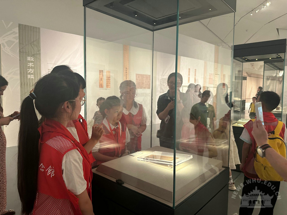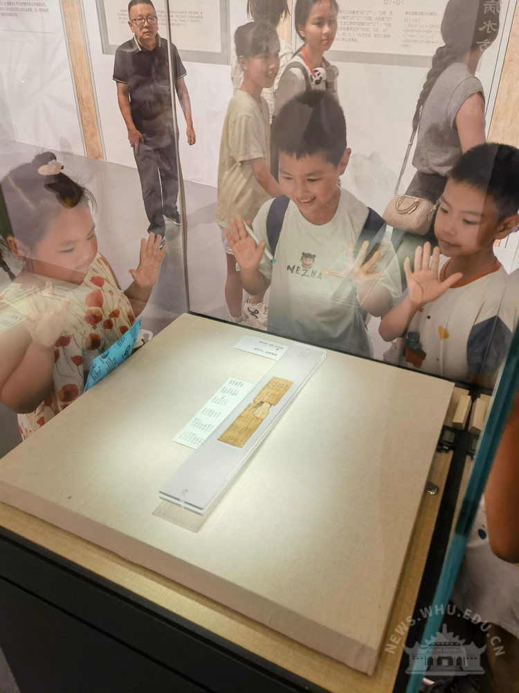 恰逢暑期,展廳成為全國各地中小學生研學的生動課堂。據不完全統(tǒng)計,展覽共接待研學團隊100余支。青少年在大學生志愿者帶領下,認真聆聽簡牘背后的故事,于古今對話中體悟中華傳統(tǒng)文化的深厚底蘊,使展覽真正成為一堂沉浸式的歷史文化實踐課。