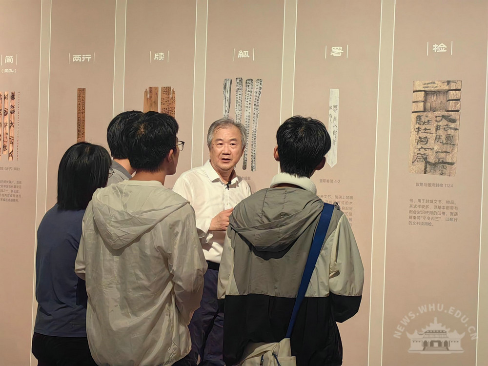 展覽期間,人文社科資深教授陳偉帶領簡帛中心師生團隊、萬林藝術博物館學生志愿者,持續(xù)組織學術交流、講解導覽,累計服務時長1100余小時。新華社、光明日報、湖北日報等10余家主流媒體關注報道,總閱讀量達300萬,有效提升了簡牘文化的公眾認知度。
