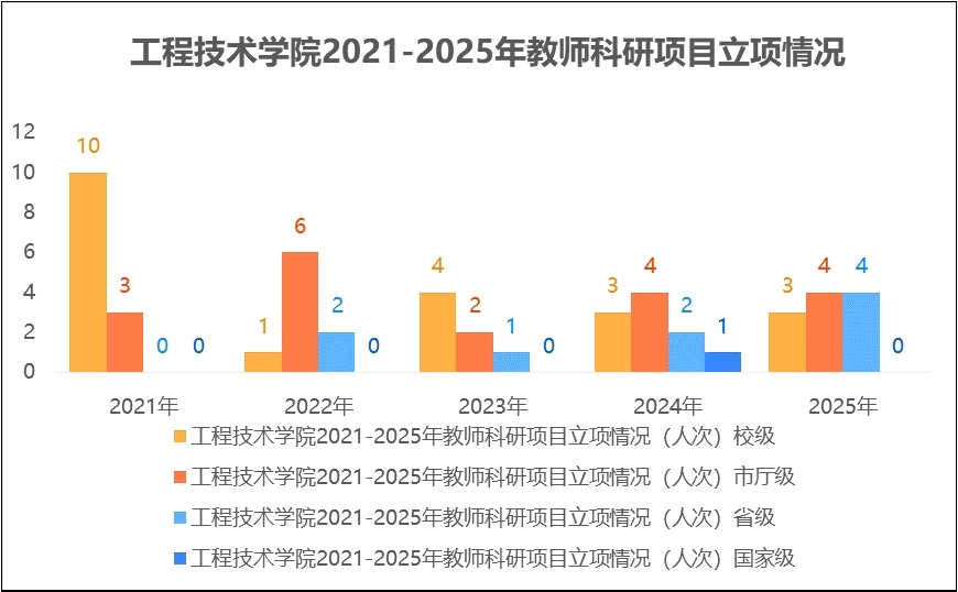 圖為工程技術學院2021-2025年教師科研項目立項情況 工程技術學院 提供