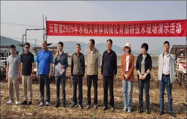 圖為云南省2025年水稻大缽體機械化育插秧技術現(xiàn)場 工程技術學院 提供